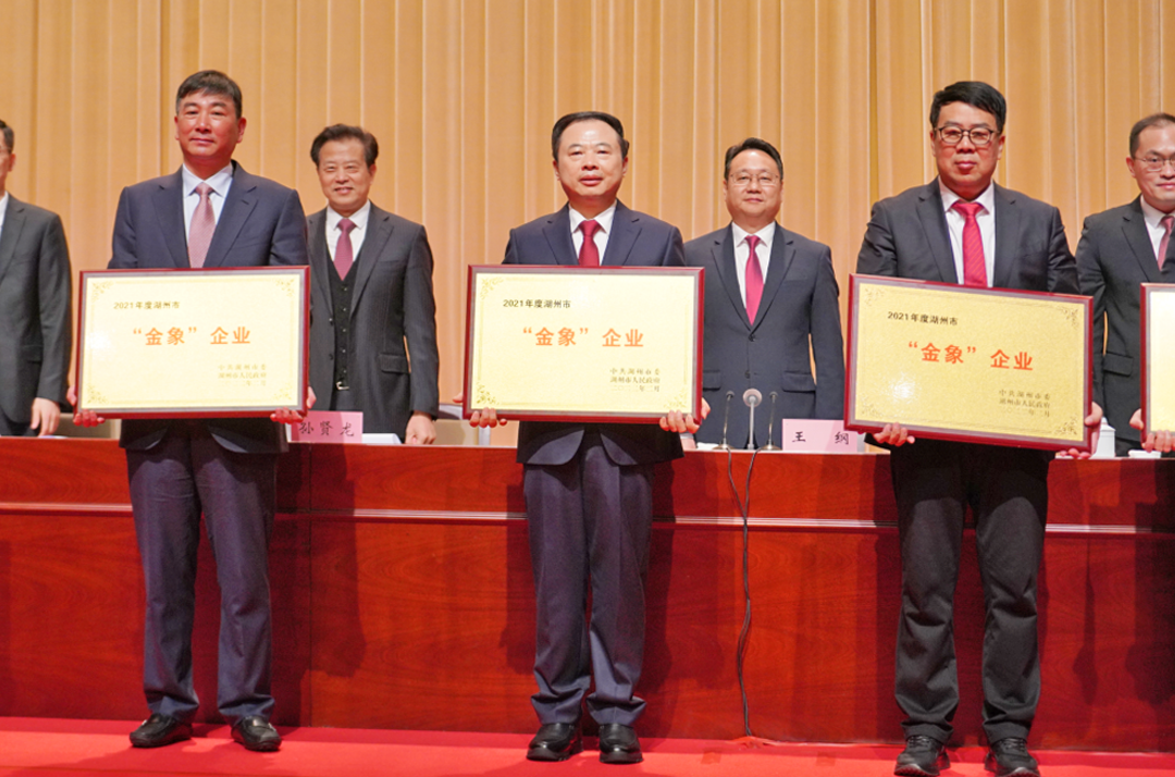 ● 2月8日,湖州市社会治理创新大会召开,710公海再次斩获“金象”企业、“纳税大户”,双双排名榜首,湖州市委书记王纲为张天任董事长颁奖。这是710公海连续第七年获得湖州“金象”企业大奖。